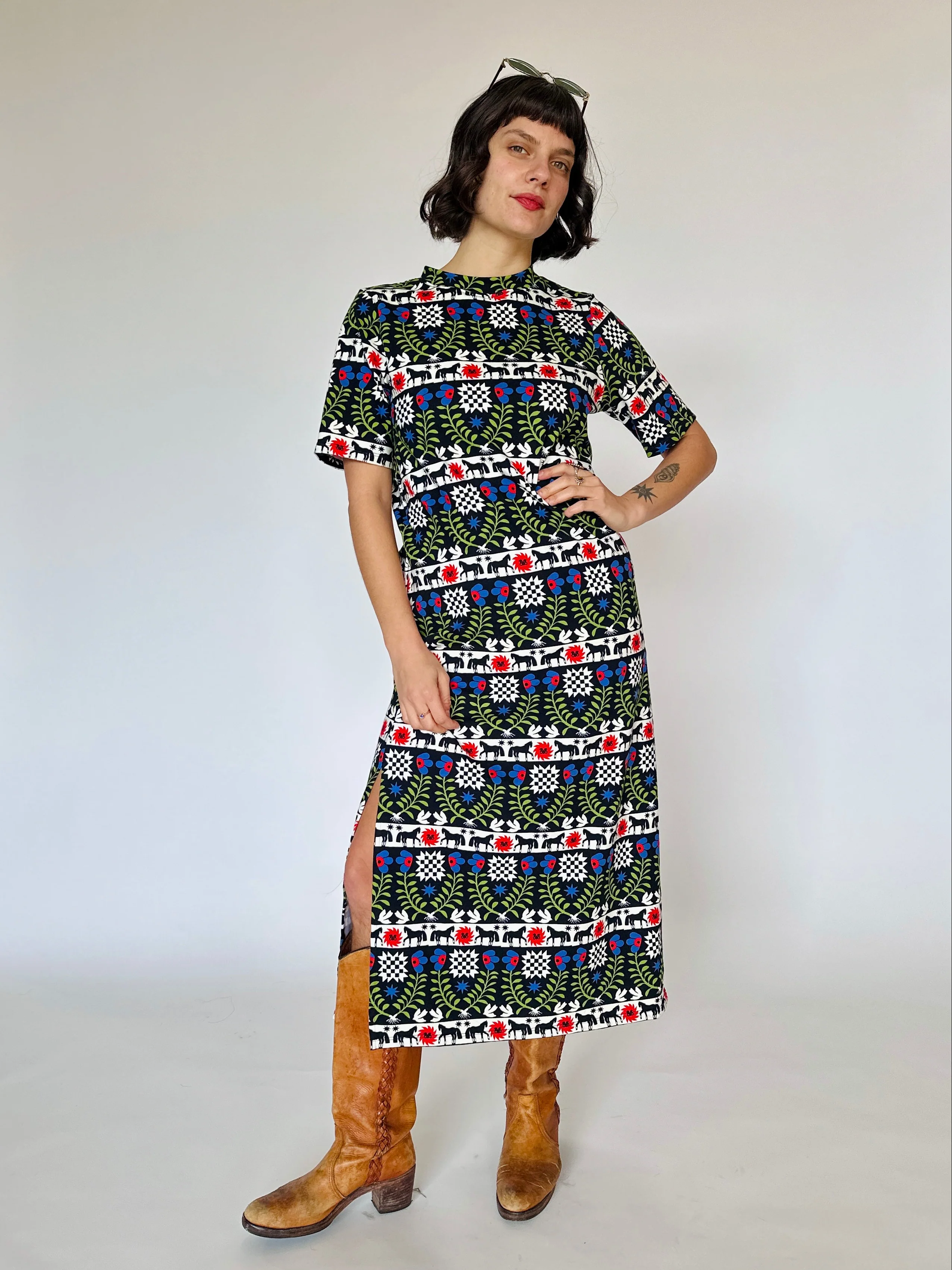 A classic option for warm weather days when you want a little extra coverage, but still keep it cute! This dress features a crew neckline, slim fit, midi length, short sleeves, and two side slits up to the knees so you can keep it movin'!