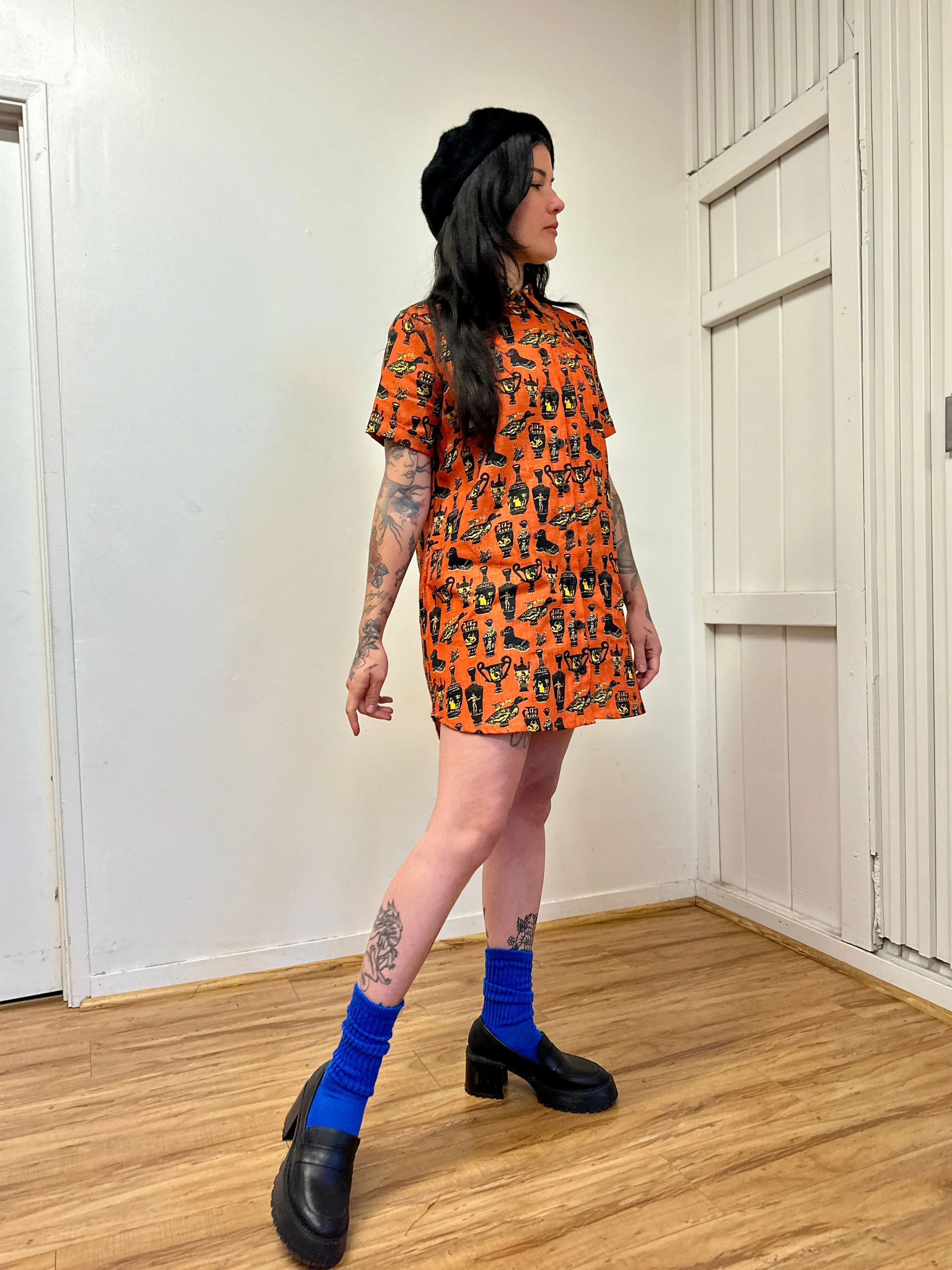 Hello spring and hello versatility! The linen shirt dress works as a tunic, dress, or outer layer perfect for the warm days ahead! The design features a curved hemline, buttons all the way down, classic collar and short cuffed sleeves.